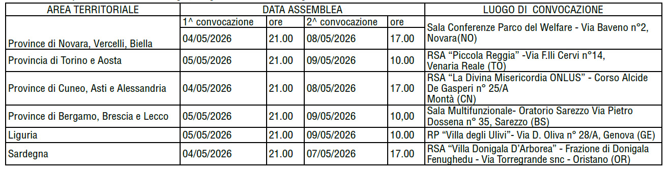 Le Assemblee Separate si terranno nei luoghi, nei giorni e nelle ore di seguito indicate: