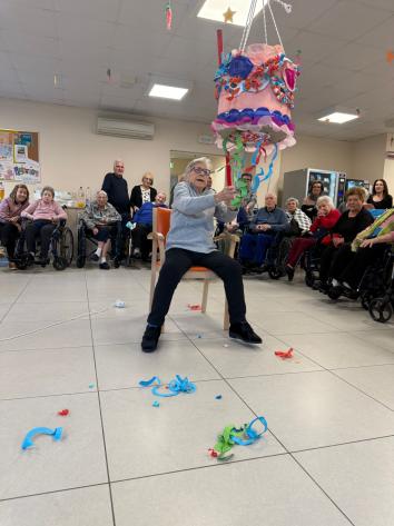La sala principale si è trasformata in uno spazio festoso, animato da musica, maschere e decorazioni realizzate dagli Ospiti. Il personale di animazione ha proposto coinvolgenti giochi di gruppo, pensati per stimolare partecipazione di Ospiti e Parenti, momento clou della festa è stata la pentolaccia, attesissima e partecipatissima da tutti. La pentolaccia era stata costruita con cura dagli Ospiti durante il laboratorio creativo nei giorni precedenti, con entusiasmo e fantasia.