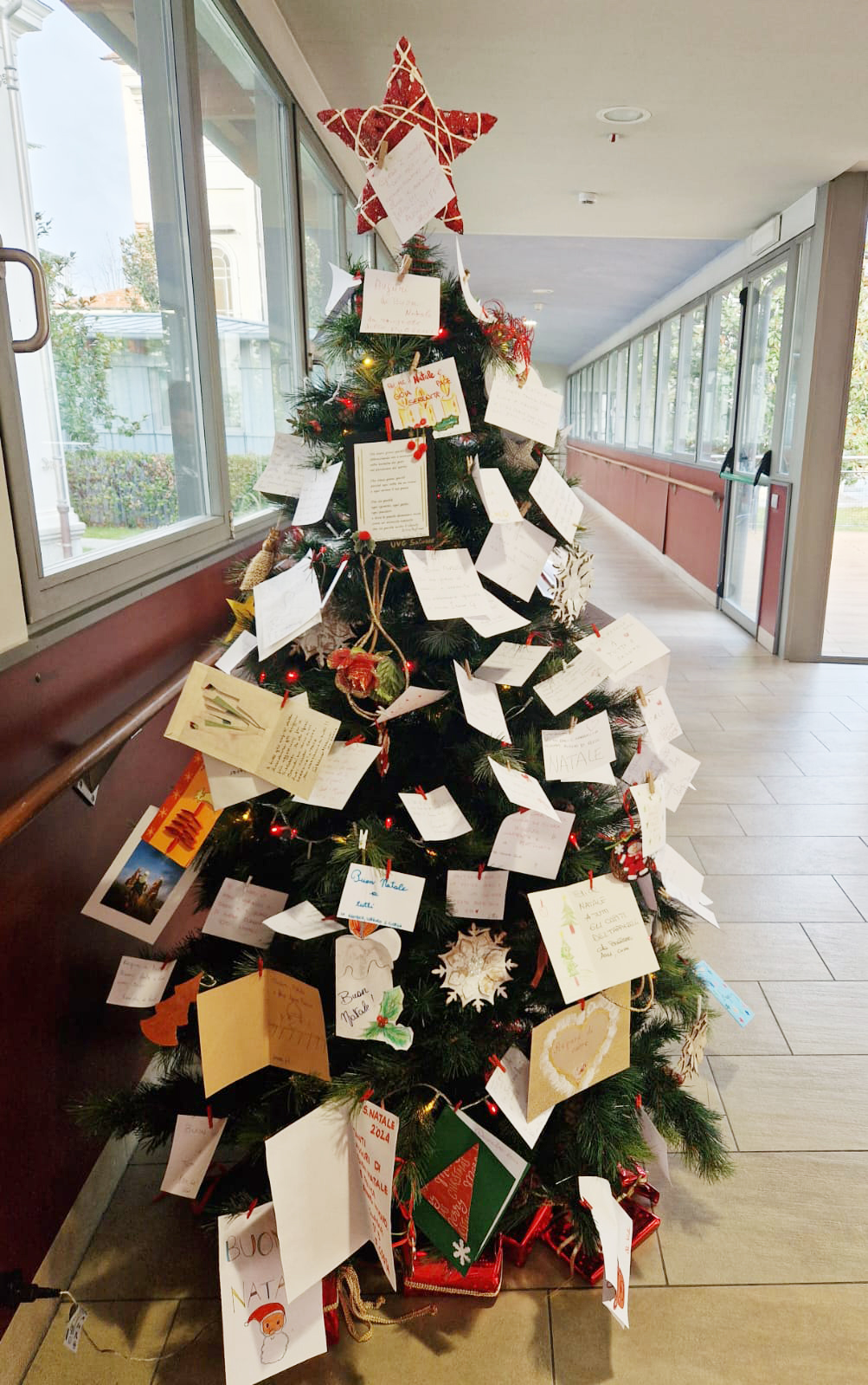 Quest'anno, alla Residenza E. Tapparelli di Saluzzo, il nostro albero di Natale ha un tocco davvero speciale. È ricoperto di bigliettini di auguri pieni di affetto e calore, scritti da ospiti, famigliari, conoscenti, operatori e amici.